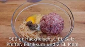 500 gr Hackfleisch, 1 Ei, Salz, Pfeffer, Basilikum und 2 EL Mehl