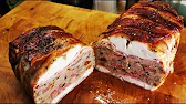 Hackbraten mit Huhn und Schinken und Frühstücksspeck. Mal was anderes, als immer nur Rind/Schweinehack. Die Kerntemperatur war 75° und die Ofentemperatur reiche ich auch noch nach: 170° Umluft. 90min hats bei mir gedauert.